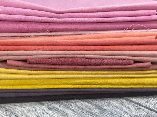 I, now, proudly use a temple (a stretcher of sorts), not because I need one to make my selvedges neater, but because I like the way each beat feels when I’m weaving. I add spices and ingredients when I’m cooking that I’m sure my Italian family members who have crossed over are cursing me for from the grave. I often hear my daughter’s three year old voice in my head (she is now thirty), “just make it up!” I make it up, alright! If a thought crosses my mind about the what ifs of natural dyeing, I’m in my garden cutting hollyhocks and zinnias.